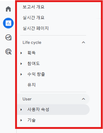 왼쪽 바의 생애주기(Life cycle)에 따라서 각기 목적에 따라 파악할 수 있는 메뉴들이 있음으로