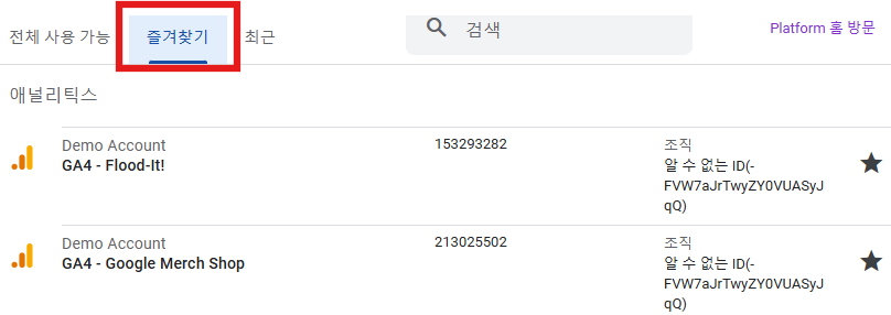 아래의 URL에서 Google GA4의 데모 계정을 연결하여